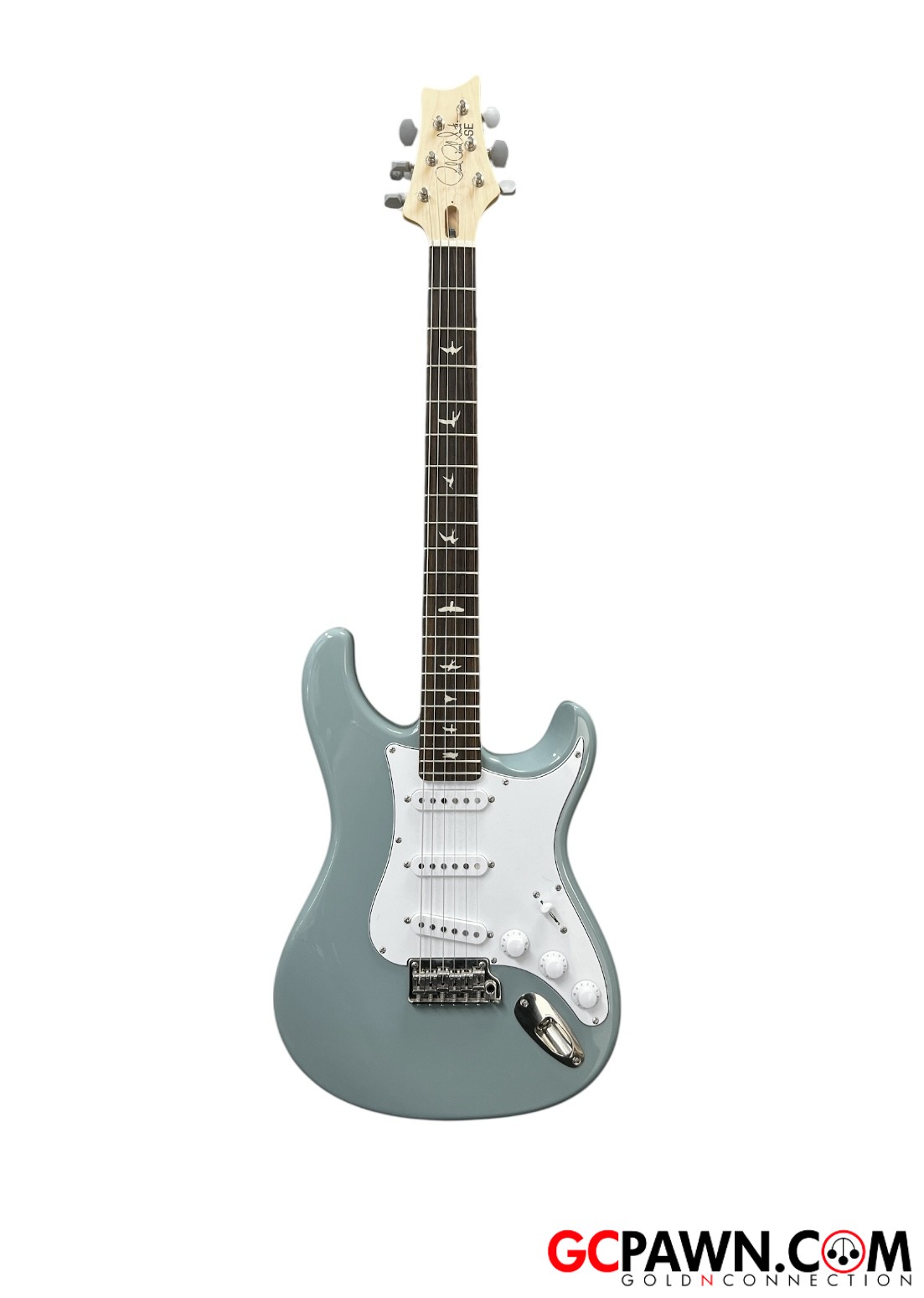 The PRS SE Silver Sky starts with a poplar body, bolt-on maple neck, and rosewood fretboard with PRS trademark bird inlays. The 22-fret, 25.5" scale length neck features the original 635JM carve and an 8.5" fretboard radius, so the PRS SE Silver Sky will feel right at home. Plug it in, and the three single-coil 635JM "S" pickups will bark and sing. This guitar is anchored by a two-point steel tremolo, synthetic bone nut, and a vintage-style tuners. Other design features include the PRS Silver Sky inverted headstock shape and the PRS double-acting truss rod (accessible from the front of the headstock for ease of use).